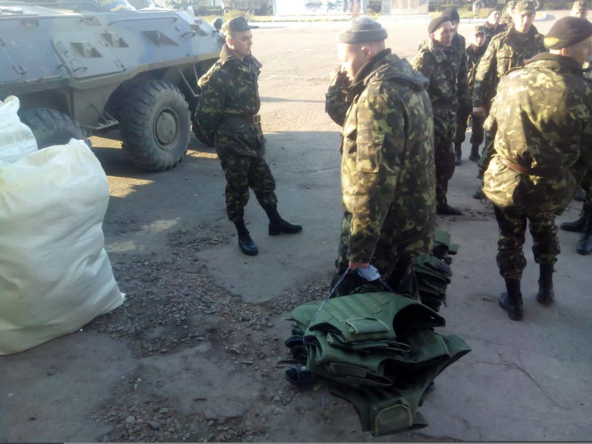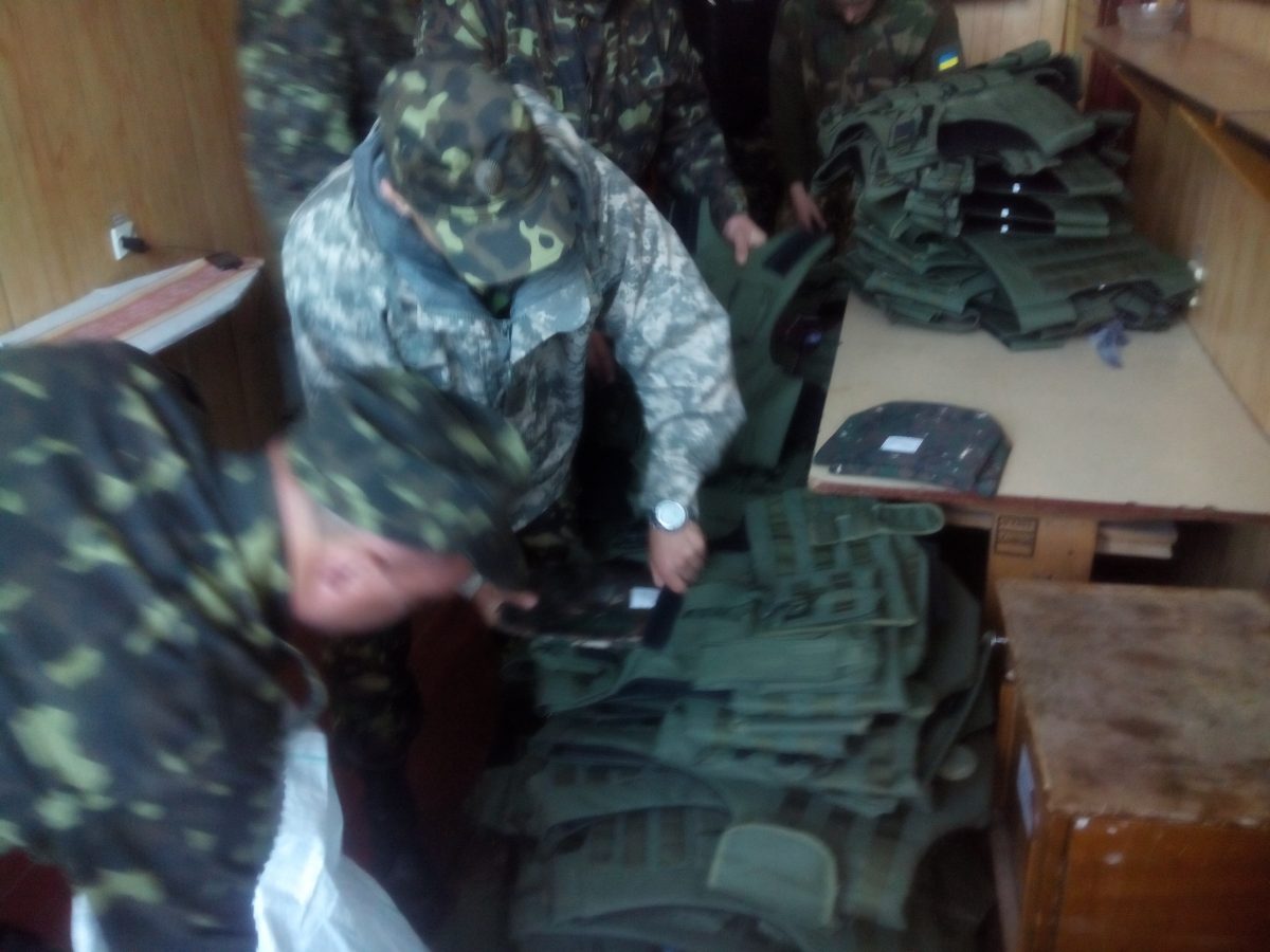 Ну, а по фактам фото: вчерашний груз прибыл в часть, бронепластины были вставлены в чехлы и броники розданы. В пятницу я еду из Киева в Николаев и очень рассчитываю привезти им еще.
