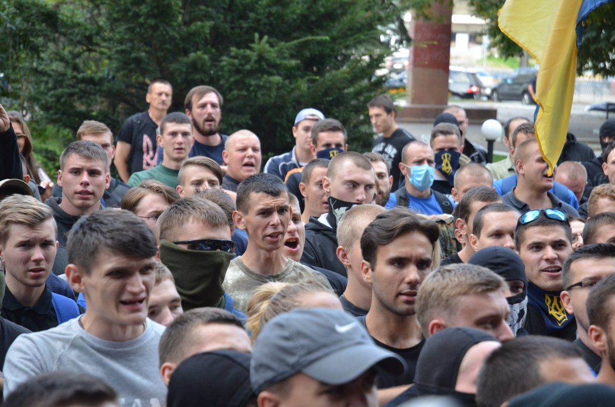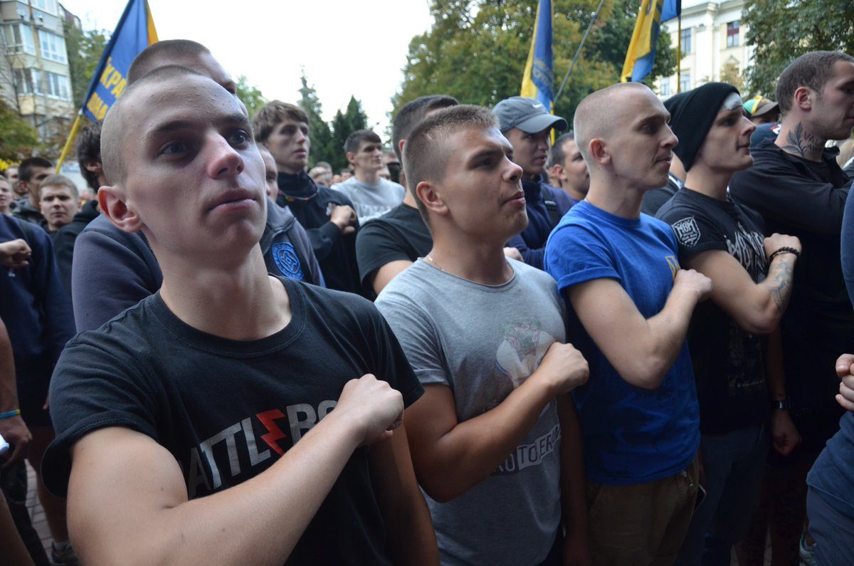 На пикете присутствует и глава киевской ячейки «Азова» Сергей Филимонов, которого сегодня отпустили на поруки. Именно во время вчерашнего пикета его и задержали.