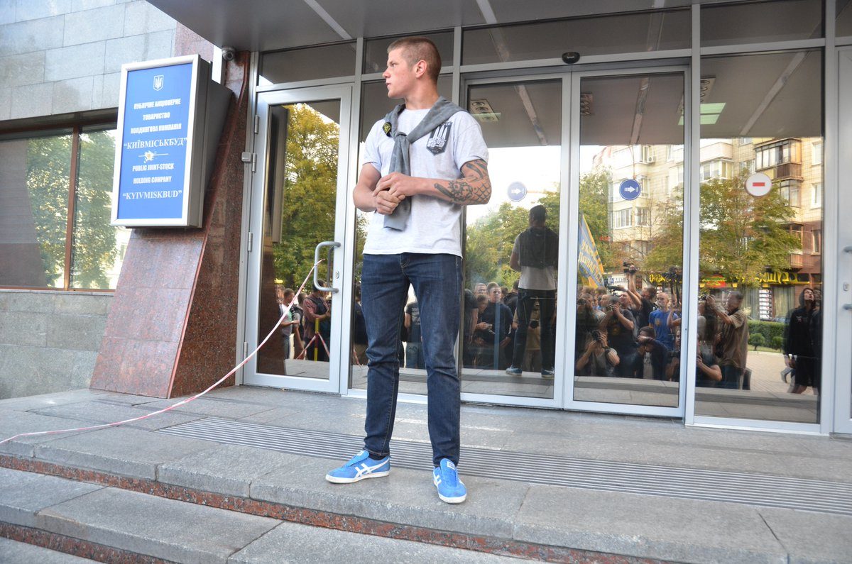 Активисты «Азова» снова пикетирует «Киевгорстрой» с освобожденным Филимоновым