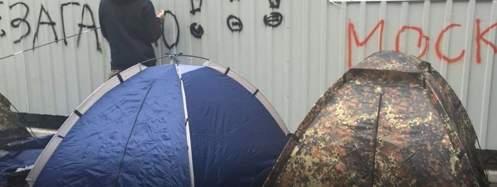 Активисты поставили первые палатки у здания телеканала «Интер»