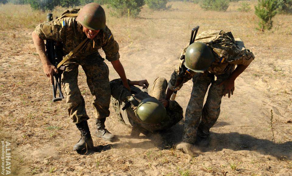 «Был батальон – 400 человек, осталось 180: кто ранен, кто убит. Был батальон…», – прорываются сквозь шум ветра слова Дмитрия Андрощука, инструктора со стажем. — «Когда на полигоне, случайно тебя увидев, подходят бойцы, которых ты учил год назад, здороваются, жмут руку и благодарят за знания, ты просто окрыленный идешь серьезно гонять новую группу. Кричать, бросать в грязь и готовить к жестоким реалиям такмеда. Не ради благодарности или денег, а чтобы так, встретиться через год и услышать, что не растерялись, кого то спасли …».