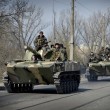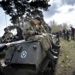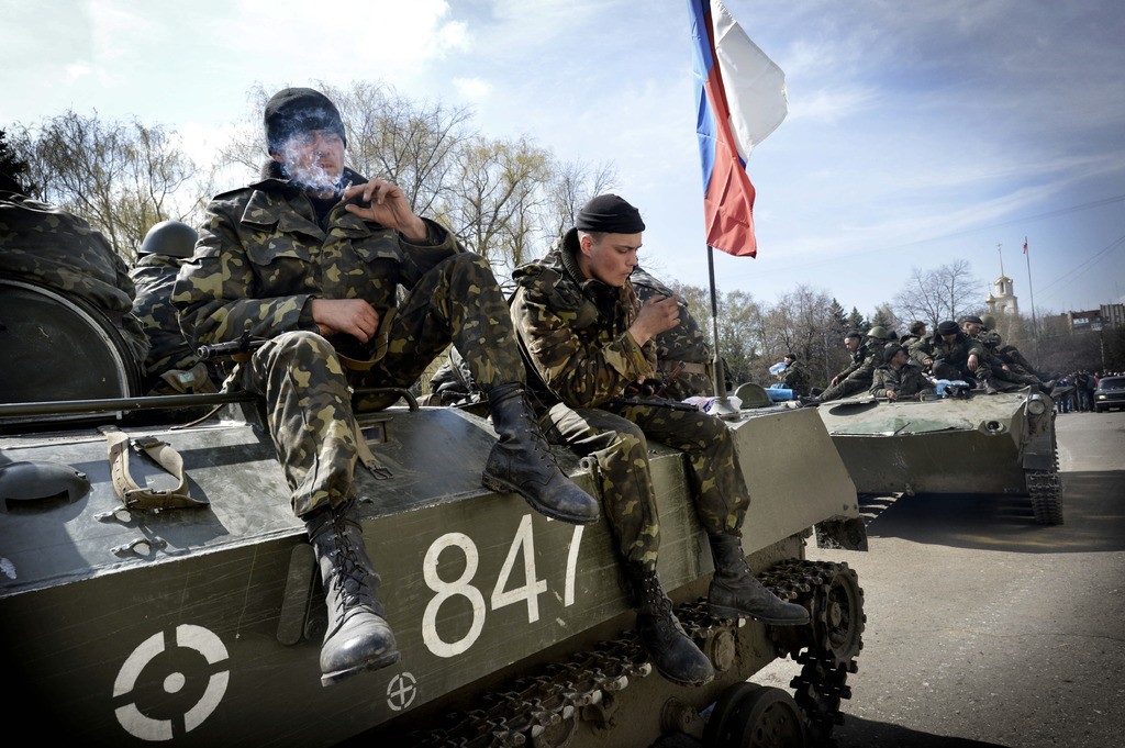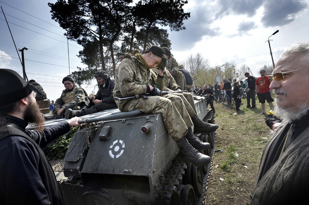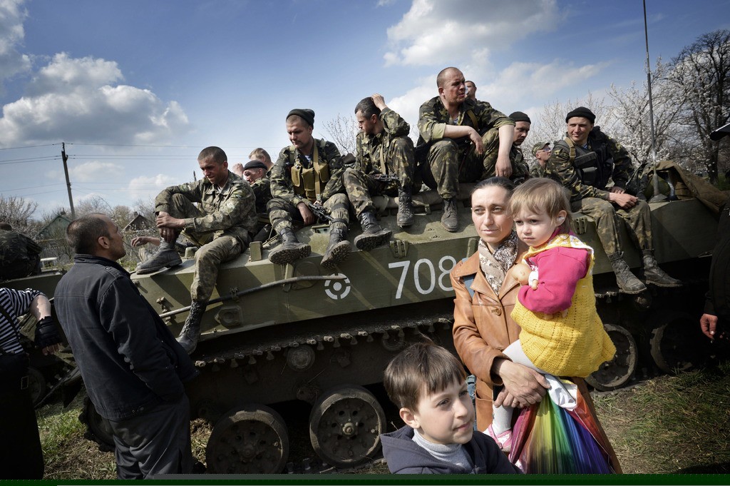 16.04.2014, Украина | Сегодня утром, когда бронемашины 25-й украинской аэромобильной бригады входили в Краматорск, участвуя в антитеррористической операции в Донбассе, никто не знал, чем этот рейд закончится. Сначала путь украинским десантникам перекрыли местные жители, потом появились вооруженные люди в камуфляже и масках (похоже, та самая диверсионная группа, которая захватывала со стрельбой здание милиции в городе). Они быстро нейтрализовали украинских воинов, и экипажи шести машин БМД, по словам местных ополченцев, заявили о своем переходе на сторону сепаратистов.