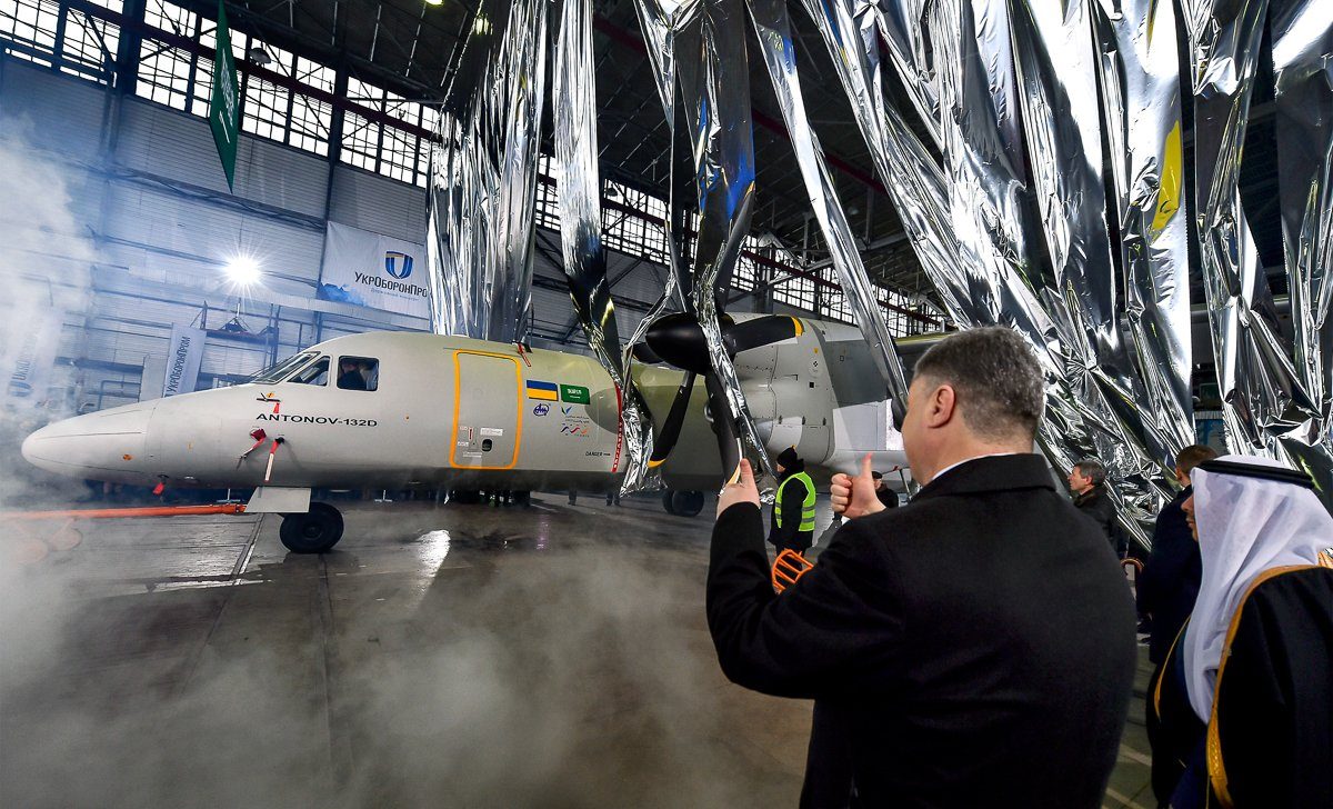 На госпредприятии «Антонов» в Киеве во вторник был представлен новейший украинский самолет — транспортник Ан-132. В презентации принял участие президент Петр Порошенко.