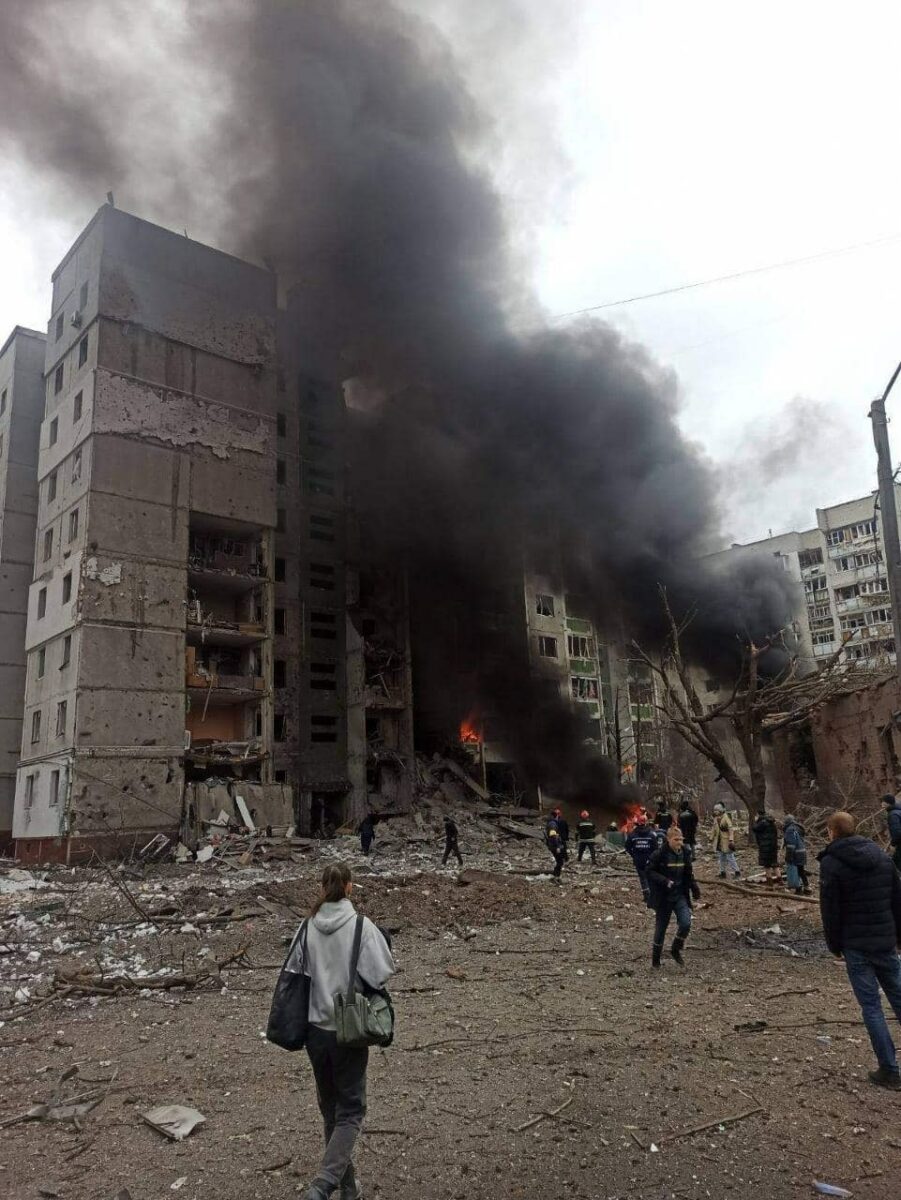 «Полчаса назад российские войска нанесли ракетный удар по многоэтажному жилому массиву в центре города. Многие многоквартирные дома повреждены, выбиты окна, повреждены стены, кровли, балконы, кое-где уничтожены стены и перекрытия. Поблизости нет никаких военных объектов. Рядом находятся больницы, несколько школ и детсадов, десятки многоэтажек», — написал Чаус в телеграмме в четверг.