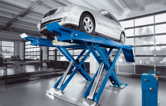 - ножничные с длинной платформой и дополнительными лифтами — универсальный тип подъемника, который станет полноценной заменой смотровой ямы;