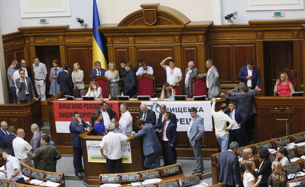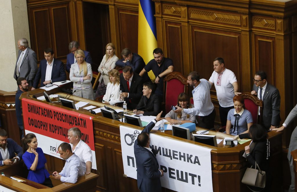 Во вторник, 5 июля, фракции «Батькивщина» и «Радикальная партия» заблокировали президиум Верховной Рады. Депутаты требуют создания временной следственной комиссии Рады по расследованию наличия офшорных компаний у представителей власти, снижения тарифов на газ и услуги центрального отопления. Об этом сказано и на официальном сайте «Батькивщины».