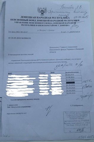 «Или зарплату сотрудникам Донецкого пенсионного фонда по-прежнему платит Киев? так почему тогда документы на «фирменных» бланках теров? Прошу СБУ дать оценку данной ситуации. Сори за качество фотографий, но текст разобрать можно», — отметил Бочкала.