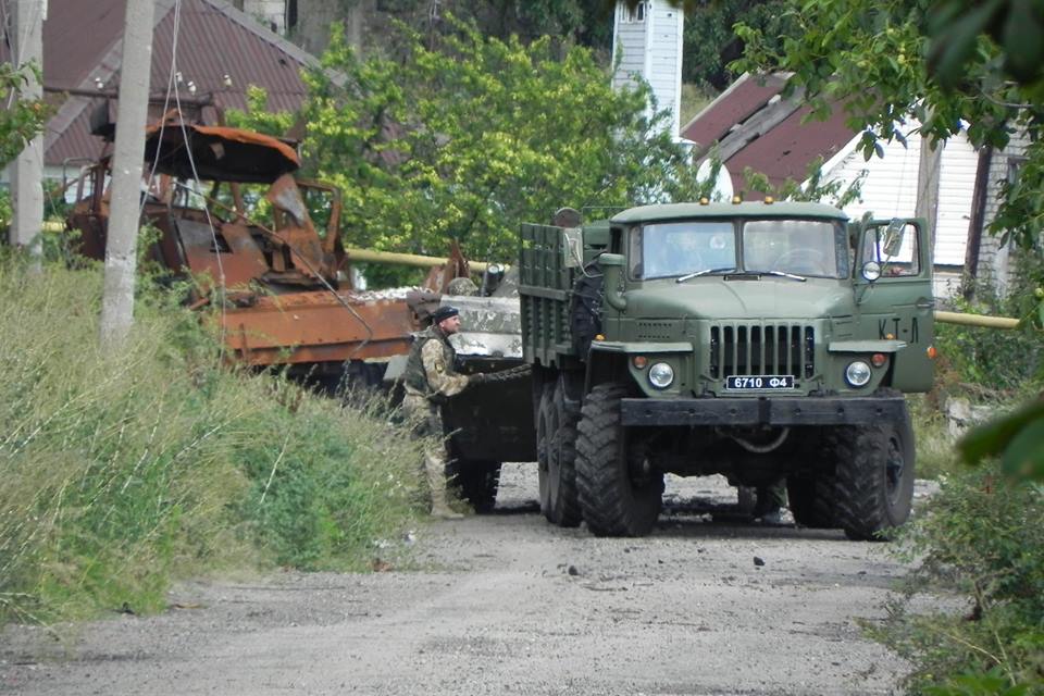 «Вчера, вытащили с территории подконтрольной сепаратистам в Широкино — БМП-2, подбитую нами же, несколько месяцев назад. Виновник «торжества» — командир роты – «Третий» (первое фото). У него эта БМП – навязчивая идея, последние три дня)… 70% проделанной работы – это его старания, 30% — вклад всех остальных участников)», — пишет боец Дмитрий Бабкин.