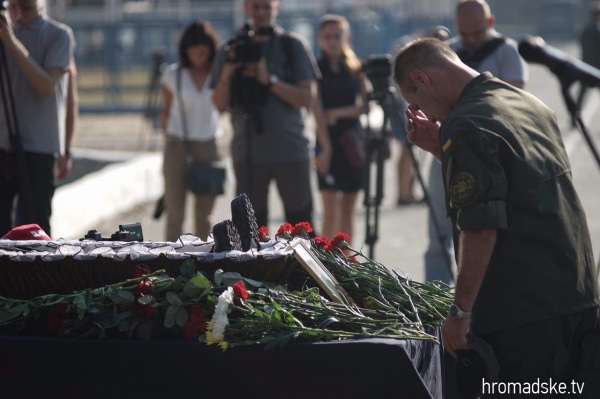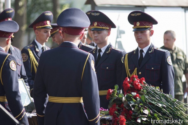 Бойцы Нацгвардии простились с товарищем Игорем Дебриным, который погиб от ранения, полученного под Верховной Радой 31 августа. В результате взрыва гранаты гвардеец получил осколочное ранение в сердце.