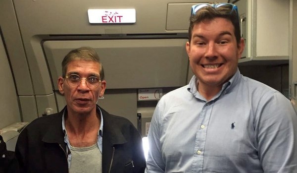 Тогда Бен встал рядом с угонщиком, на теле которого было закреплено устройство, похожее на бомбу, и широко улыбнулся, пока кто-то из членов экипажа делал снимок.