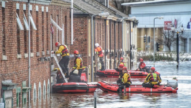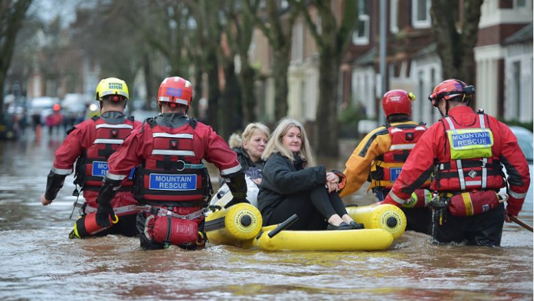 В субботу из-за шторма Десмонд объявили «красный» уровень опасности. Наводнение вызвало значительные разрушения, в частности, в графстве Камбрия на северо-западе Англии.