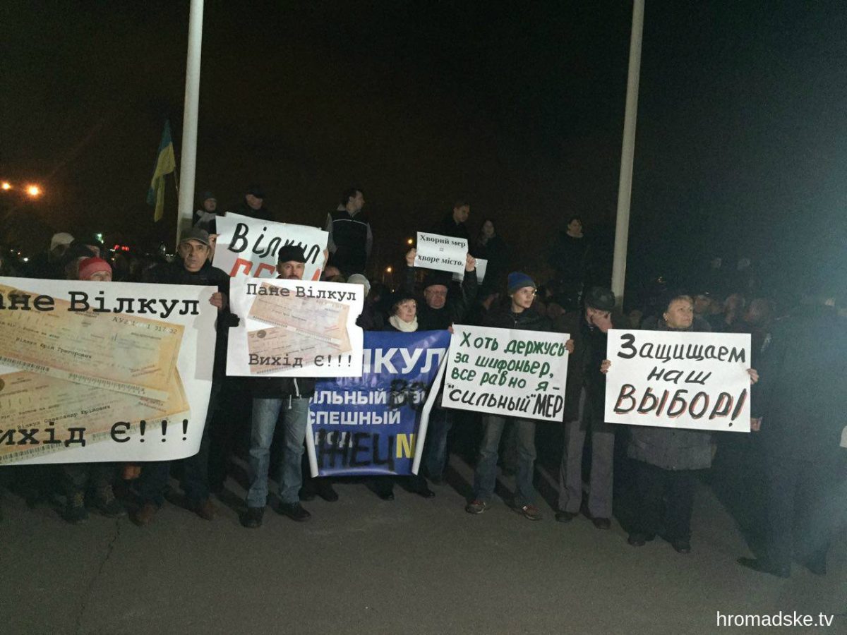 По состоянию на 17:19 возле комиссии уже собрались люди. Скандируют «Геть, Вилкул!». Кроме того, сообщают, что в здании горсовета еще днем находятся «титушки».