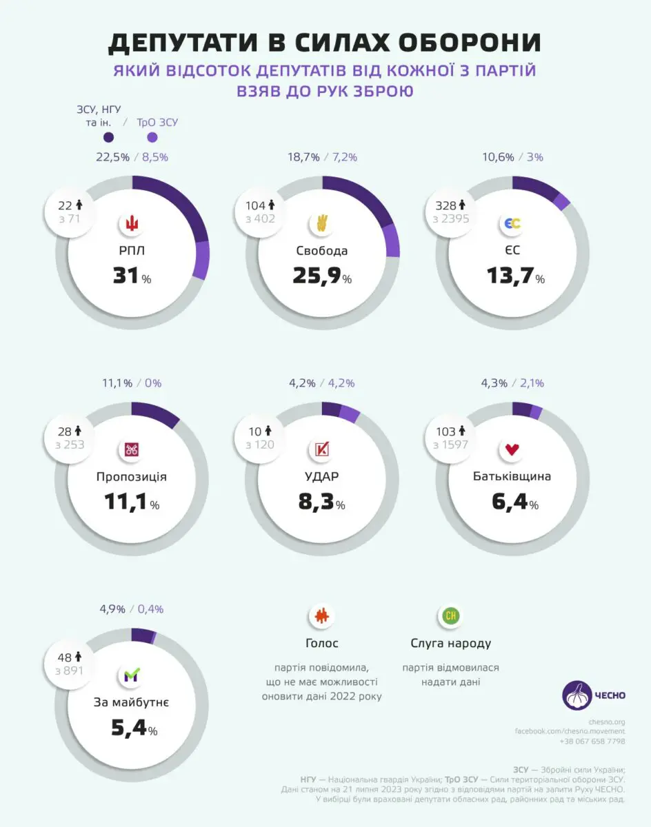 Чесно: Больше всего депутатов на войне от партии «ЕС», «Слуги» данных не предоставили
