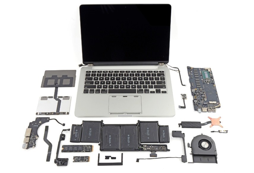- Осмотр на наличие физических повреждений. Осмотрите ноутбук на наличие физических повреждений, таких как пролитая вода или видимые повреждения материнской платы. Если заметили повреждения, то советуем отнести ноутбук мастеру для точной диагностики. В таком случае, необходимо будет заменить поврежденную деталь. Рекомендуем, обращаться только в те сервисные центры, которые используют высококачественные запчасти для ноутбуков.