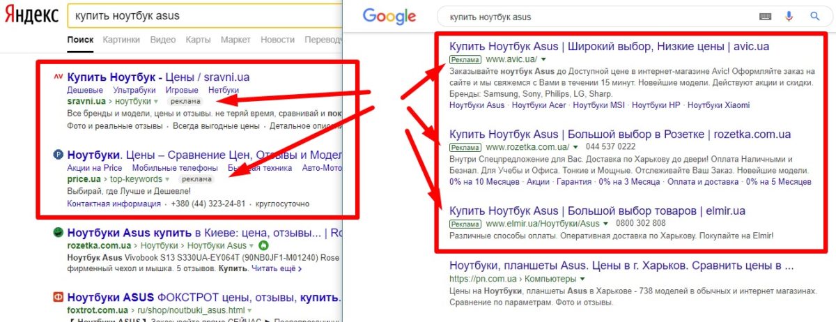 Это реклама, которая показывается тем, кто ищет ваш товар или услугу прямо сейчас, набирая в поисковой строке Яндекс, Google, Бегун, Рамблер, mail.ru или др. поисковиках определенный поисковый запрос.