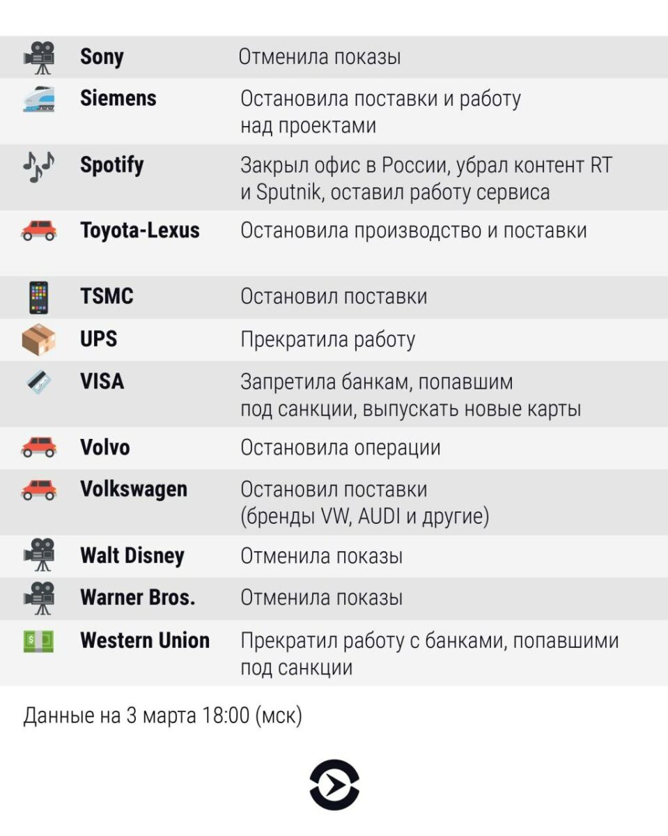 Важно отметить, что большинство мировых компаний остановили работу в России из-за ее нападения на Украину.