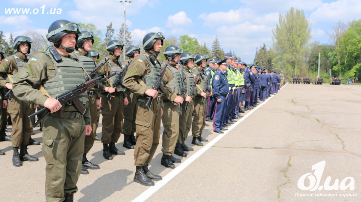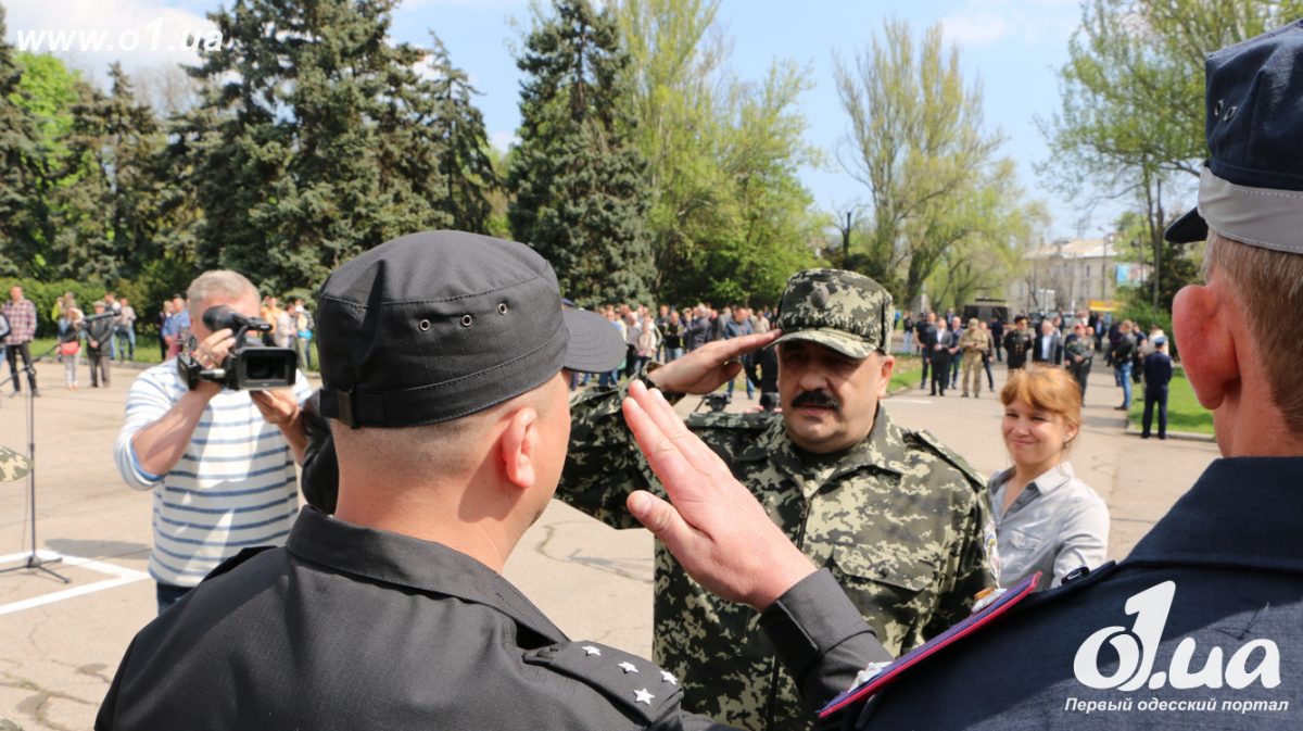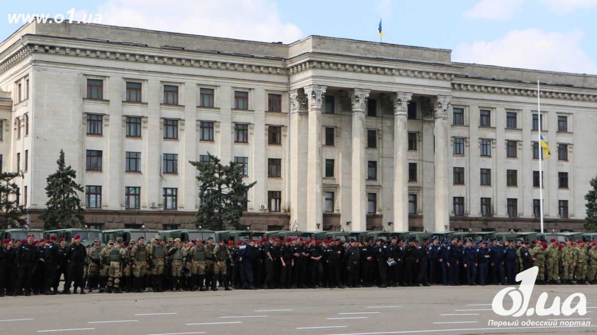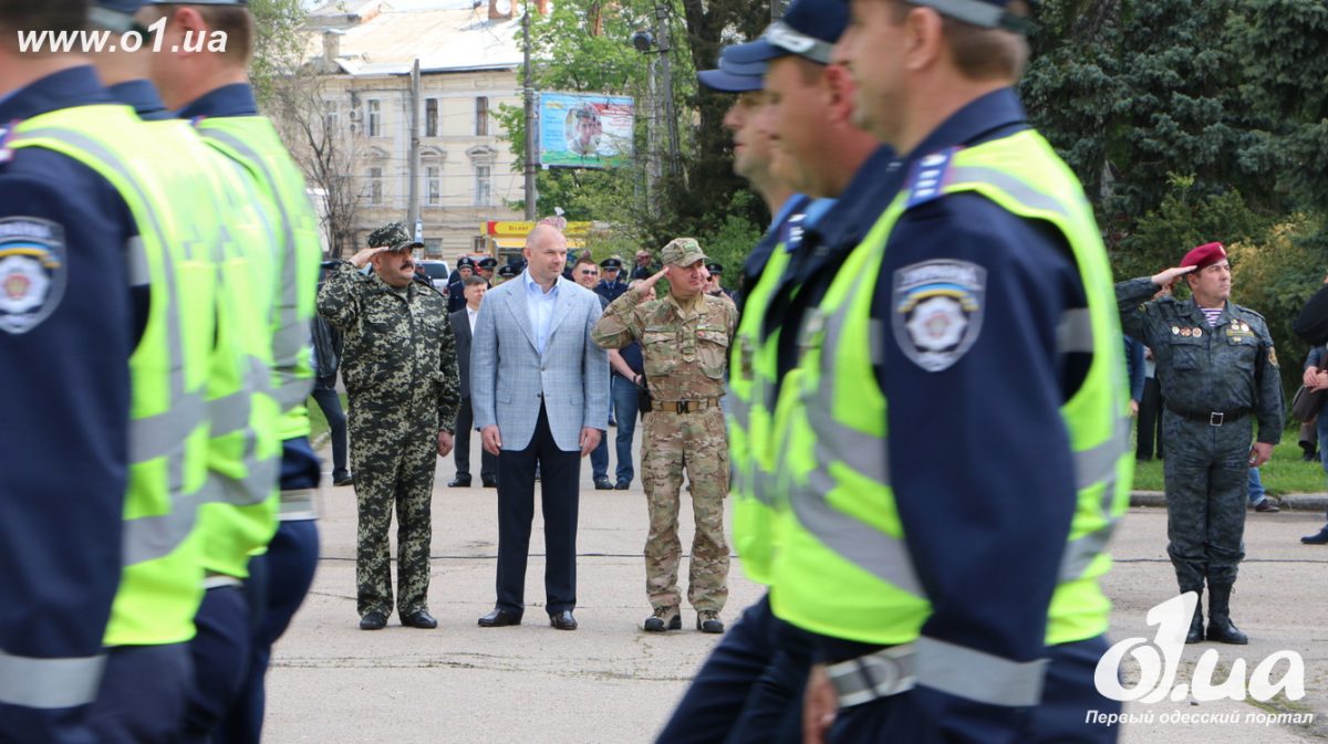 Парад силовиков принимали начальник УМВД в Одесской области Иван Катеринчук и губернатор Игорь Палица, который еще раз пообещал собравшимся одесситам мирный траурный митинг 2 мая.