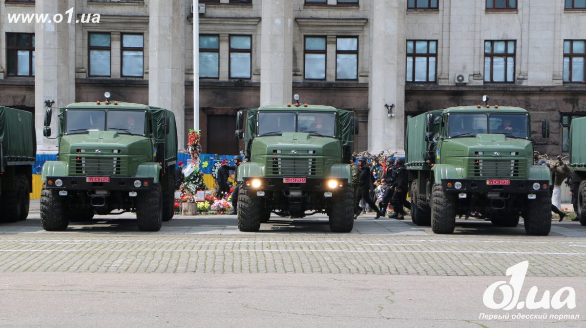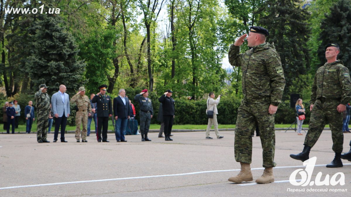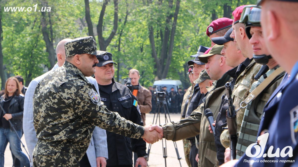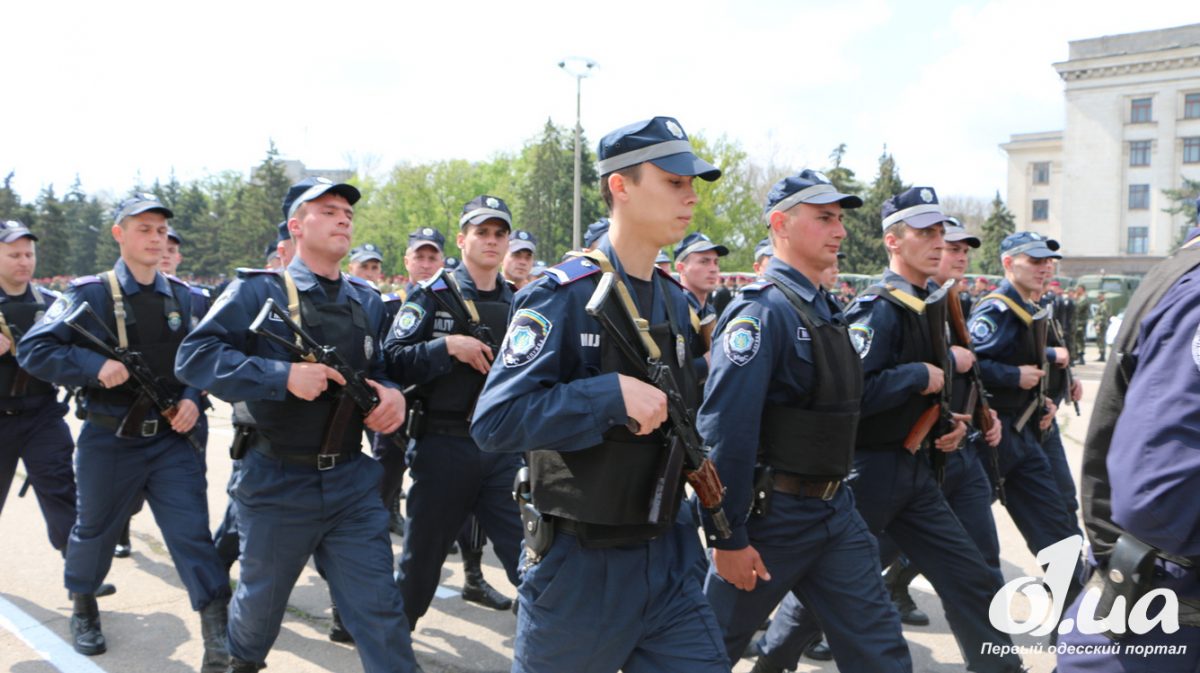 Парад силовиков принимали начальник УМВД в Одесской области Иван Катеринчук и губернатор Игорь Палица, который еще раз пообещал собравшимся одесситам мирный траурный митинг 2 мая.