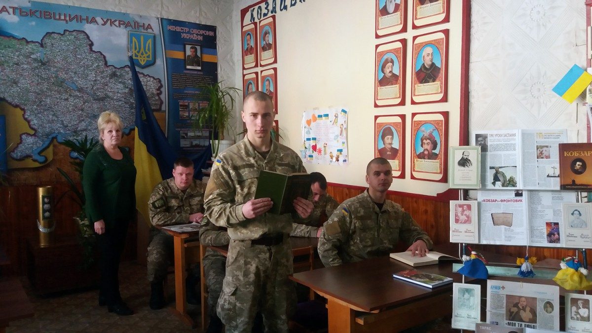 Так, в библиотеке 55-й отдельной артиллерийской бригады прошло литературное чтение. Чтение началось с короткого экскурса о биографии Тараса Шевченко. В течение часа военнослужащие прочитали около 10 различных произведений писателя.