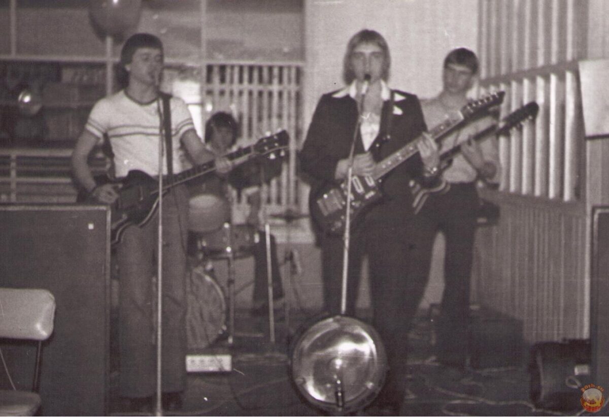 На фото — классический ВИА 1970-х годов: удлиненные волосы «под битлов», брюки-клёш, модные отложные воротники. Музыкальные инструменты — отдельная тема. Настоящих фирменных инструментов, вроде Fender или Gibson в СССР практически не было (они были доступны только «небожителям» из Госконцерта и закупались за валюту), поэтому местечковые ВИА чаще всего обходились чем-то попроще, вроде чехословацкой Iolana или восточногерманской Musima, либо на худой конец СССР-овскими гитарами, именуемыми в музыкальной среде «лопатами», «веслами» и «дровами».На фото как раз такие экземаляры, у басиста — четырехструнный болгарский бас «Orpheus», у вокалиста — знаменитый свердловский «Урал-650», у второго гитариста на заднем плане — кажется, ленинградская 12-струнная полуакустика.