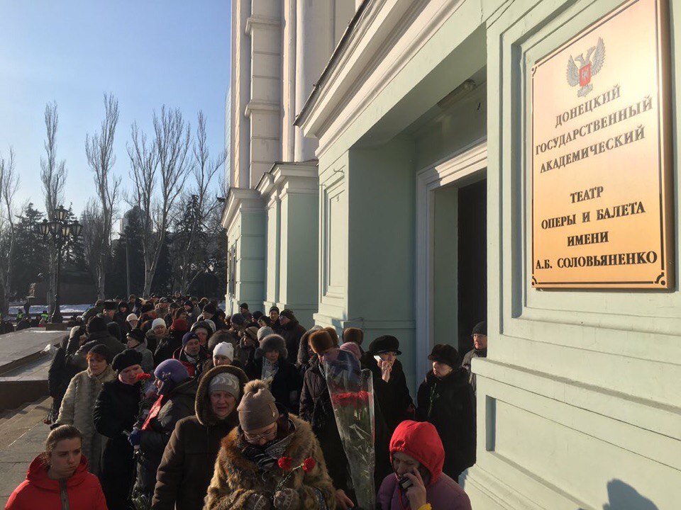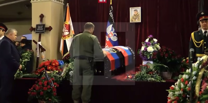 В оккупированном Донецке проходят похороны полевого командира боевиков Михаила Толстых («Гиви»). Гроб с останками террориста выставили в Донецком академическом театре.