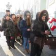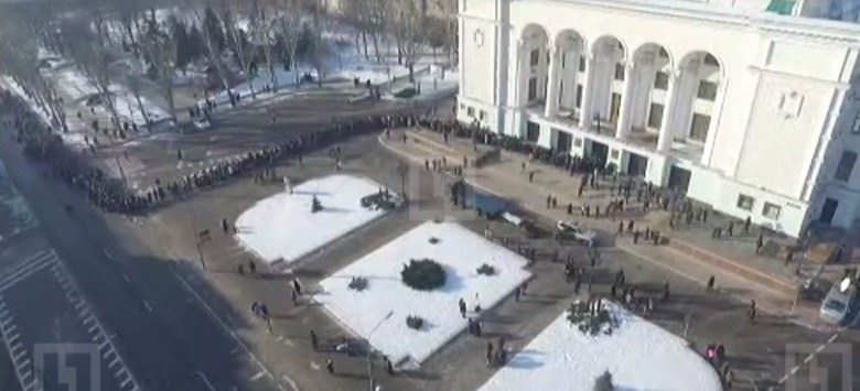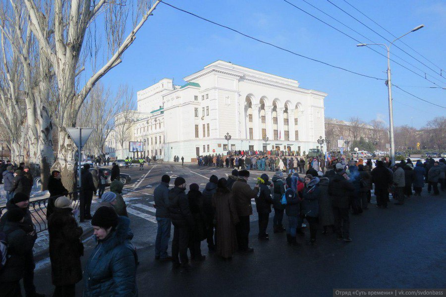 На видео и фото видны очереди людей, также зафиксированы автобусы, которые подвозят «скорбящих» с разных районов города. В целом, количество людей на похоронах «Гиви» пока явно меньше, чем на прощании сепаратистов с «Моторолой». Несмотря на это, авторы видео с похорон выносят в заголовки, что с Толстых пришли попрощаться «сотни» и «тысячи» людей.