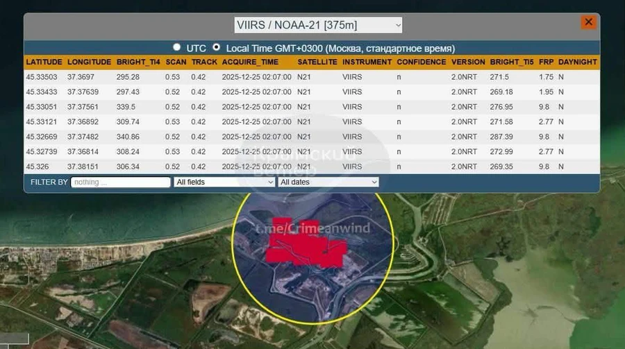 Сервис FIRMS, отслеживающий возгорания в реальном времени по всему миру, зафиксировал пожары на заводе.