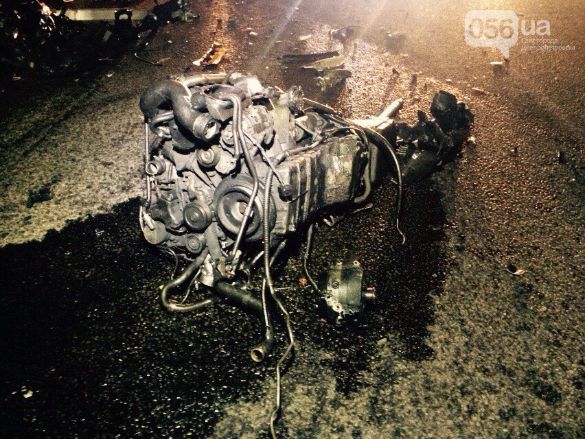 Удар от столкновения был такой силы, что двигатель «Мерседеса» вырвало и отбросило на проезжую часть, где на него наехал автомобиль Мицубиси.