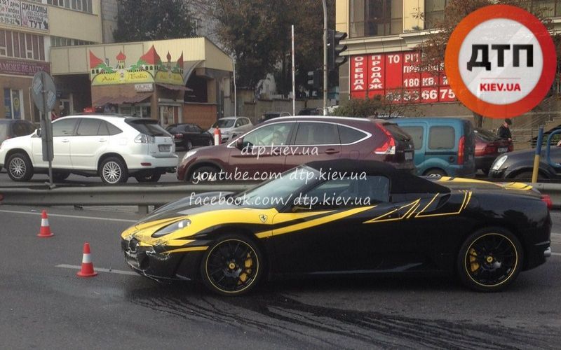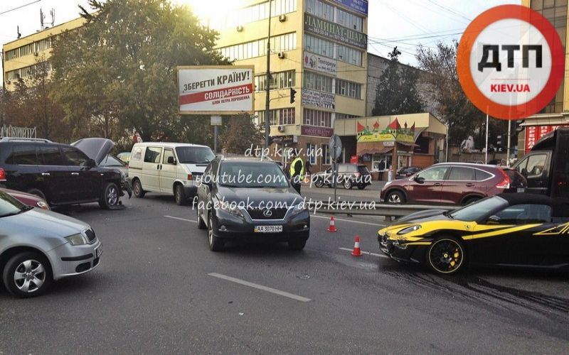 Предварительно, Лексус выезжал с Демеевской налево к Кировоградской а Ферарри двигался прямо, от Кировоградской к Автовокзалу/Науки. На месте ДТП работал патруль полиции. Возможно, аварии способствовали дорожные работы, которые существенно сократили обзорность перекрестка.