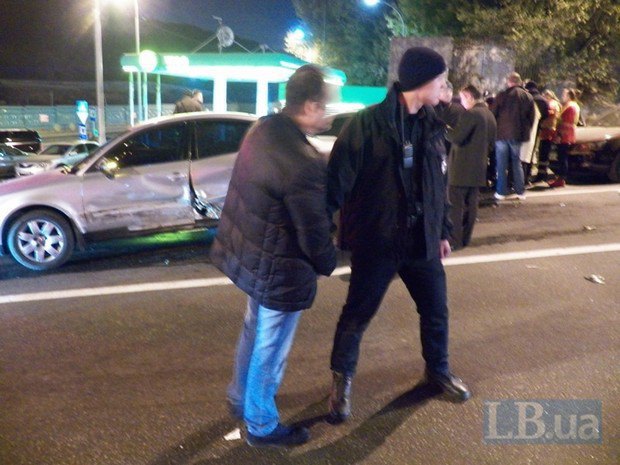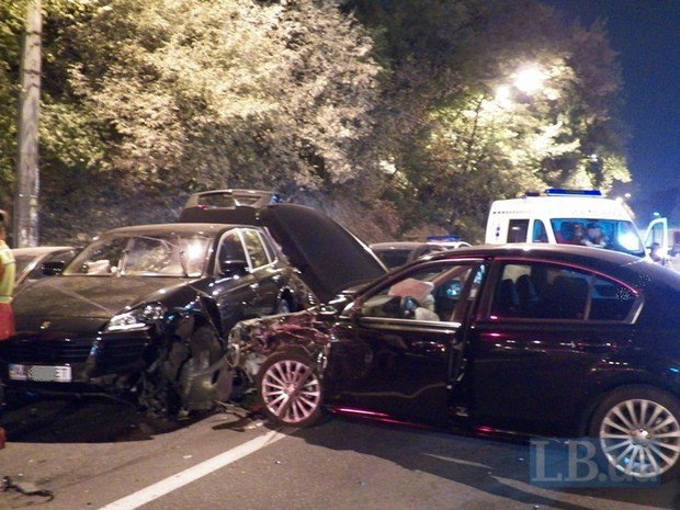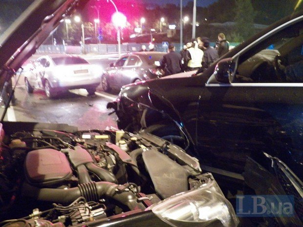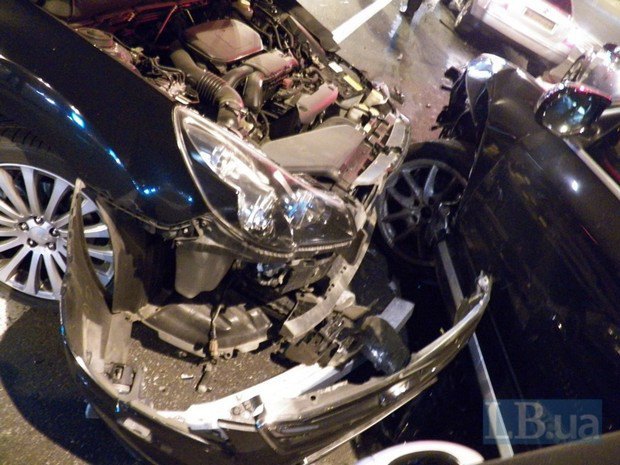 Во вторник вечером в Киеве произошло масштабное ДТП. На улице Лаврской столкнулись шесть автомобилей.
