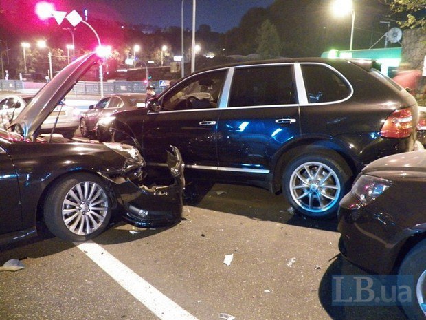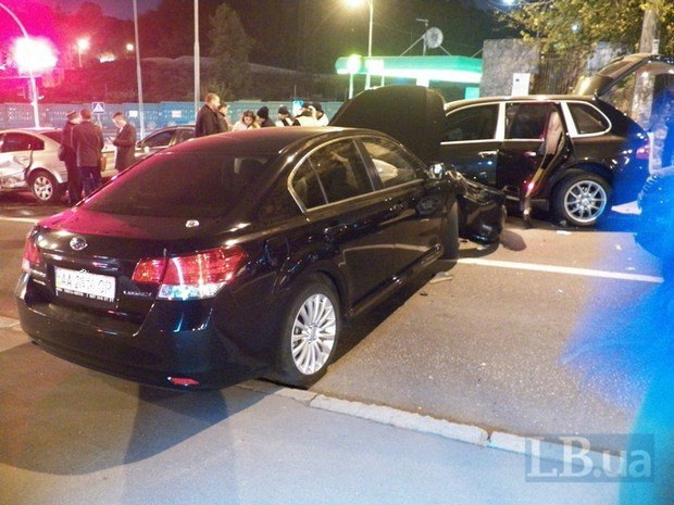 Subaru, двигаясь от моста имени Патона выехал на полосу встречного движения, после чего врезался в двигавшиеся в левом ряду навстречу Volkswagen Passat, Porsche Cayenne и Geely Emgrand. Passat ударом отбросило на двигавшуюся Mazda, а Porsche — на соседний Hyundai.