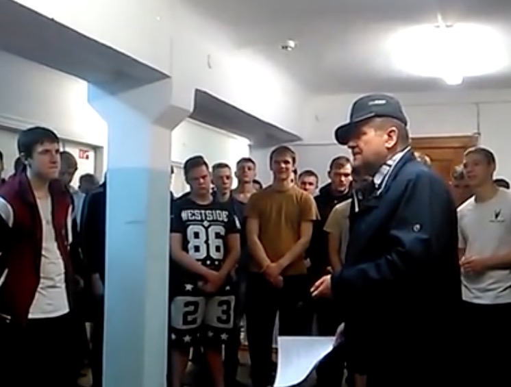 Как видно на записи, «общение» директора со студентами начинается с построения.
