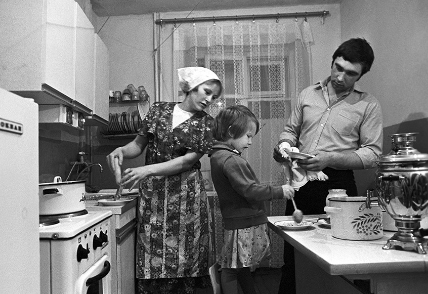 Лично мне всегда было жаль советских домохозяек — обычно на их плечи ложились все хлопоты по приготовлению праздничного стола и подготовке квартиры к приёму гостей, в то время как супруг носился по магазинам и знакомым, «доставая» всё необходимое)