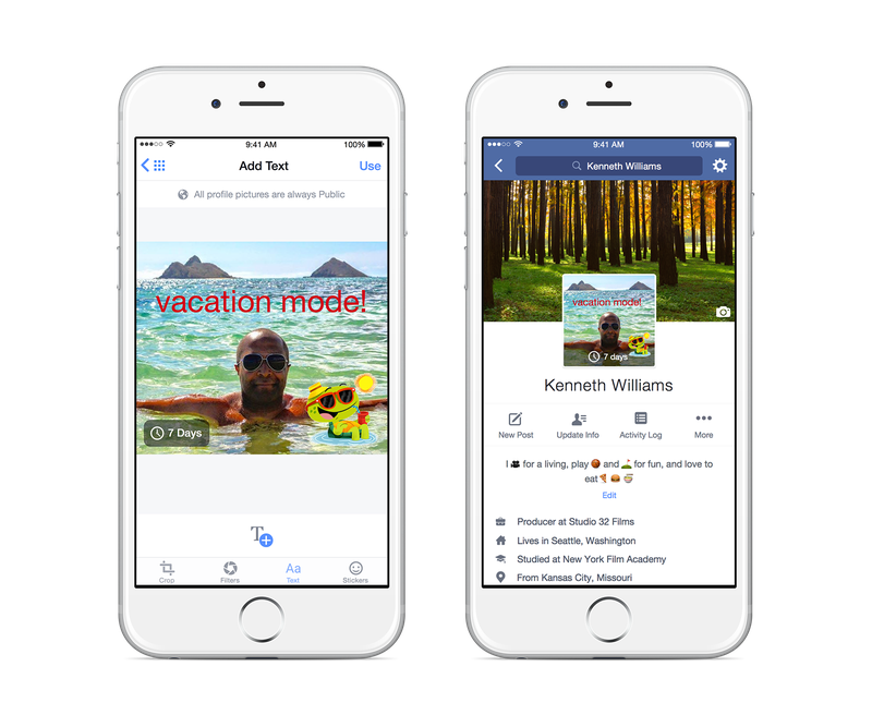 Кроме этого Facebook также в настоящее время тестирует функцию, которая позволяет установить временное фото на профиль. Картинка автоматически возвращается к старой после определенного промежутка времени.