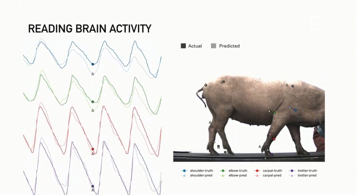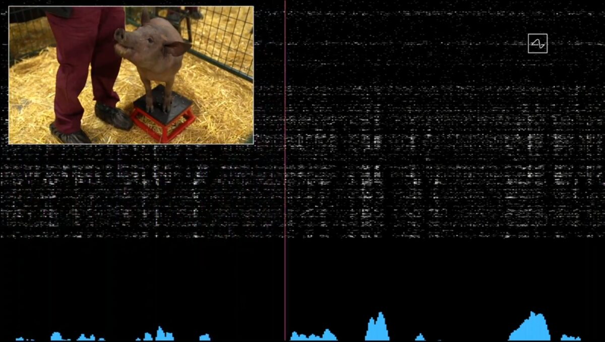 Во время презентации на экранах демонстрировались показатели мозговой активности свиньи: чип отслеживал активность осязательного центра мозга животного и реагировал на прикосновения пятачка к объектам.