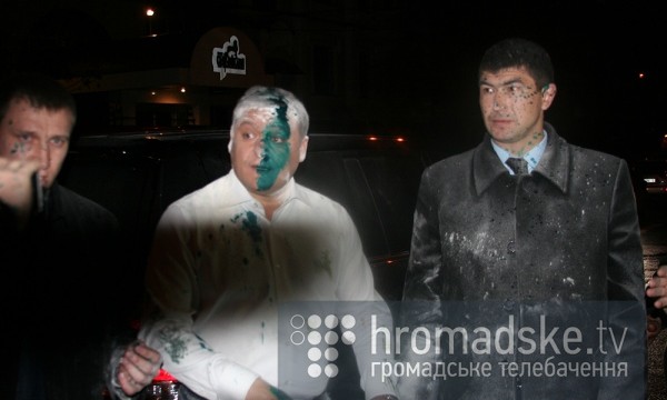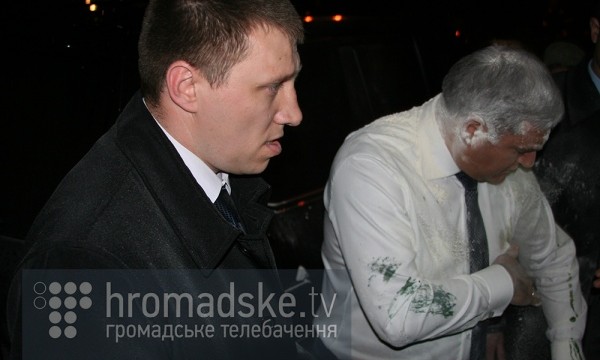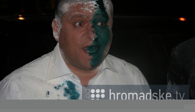 ФОТО. В Киеве Добкина облили зеленкой и осыпали мукой