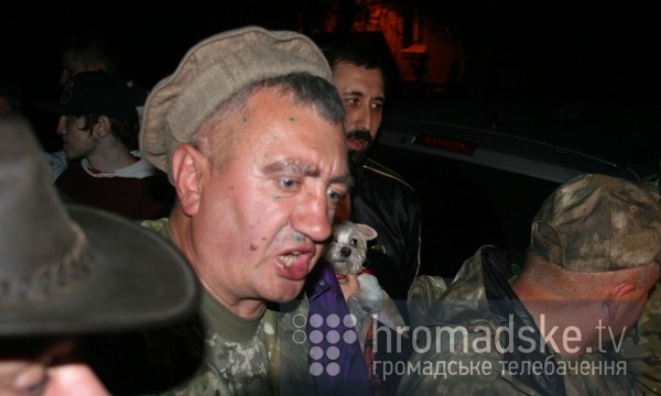 Кроме того, как сообщили очевидцы, активисты пробили шины на авто другого кандидата — Олега Царева, а Добкин ушел от митингующих без галстука.