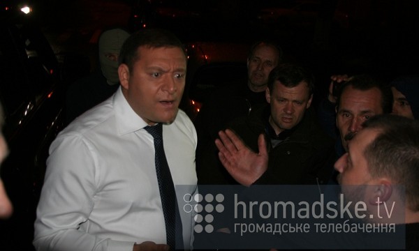 Сегодня вечером в центре столицы активисты атаковали кандидата в президенты Украины от Партии регионов Михаила Добкина и ждут выхода из здания одного из телеканалов Олега Царева.