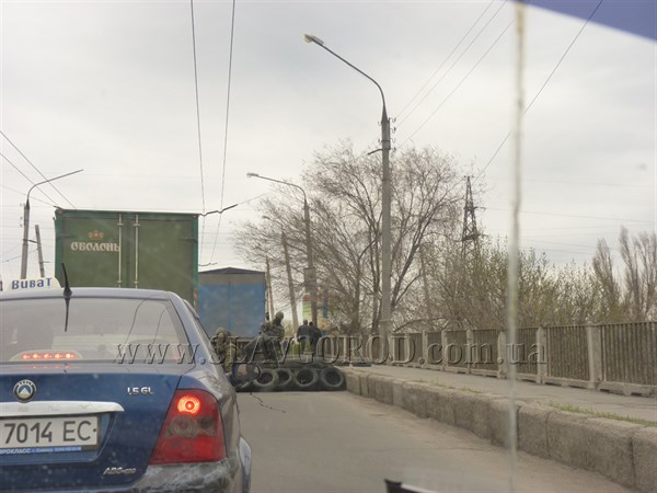 На въездах в Славянск установлены блокпосты. Люди в камуфляжах с автоматами укрепляют баррикады. На мосту через реку Казённый Торец начала образовываться пробка. Сообщает Славгород.