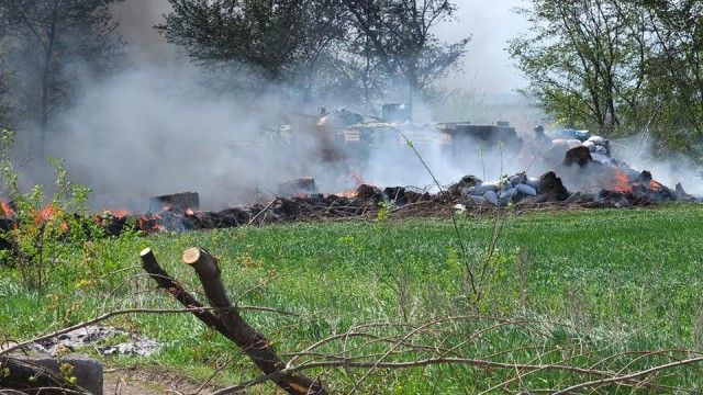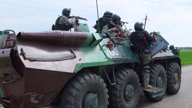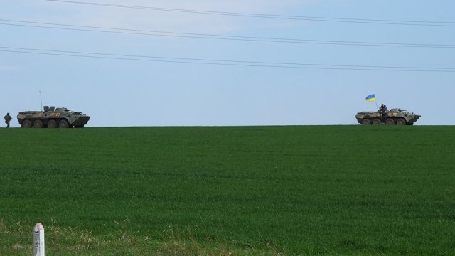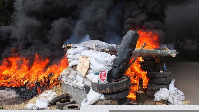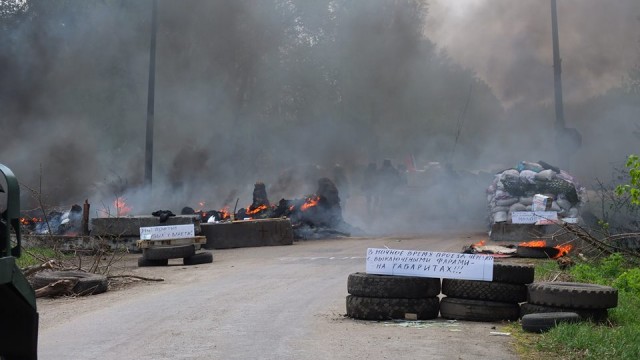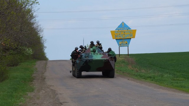ФОТОГАЛЕРЕЯ. Славянск — БТРы и горящие блок-посты