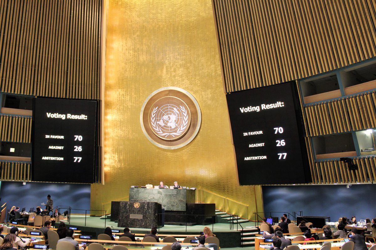 ОФІЦІЙНО: Генеральна Асамблея #ООН ухвалила українську резолюцію щодо #Крим’у. За — 70, проти — 26, утримались — 77. #CrimeaIsUkraine pic.twitter.com/5TyGolyPtv