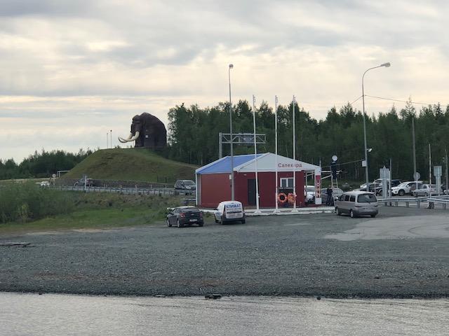 Телефон понемногу заряжался, я принимал какие-то звонки, но тут в магазин зашли сотрудники колонии и просветили продавцов, что мы из Украины. В следущее мгновение нам объявили, что мы «воруем» электричество и вырубили рубильник: отключились холодильники с мороженной рыбой, и, само собой, зарядка нашей американской техники прекратилась. Пришлось оставить этот «островок цивилизации», и брести назад к белому медведю, скульптура которого установлена перед входом в колонию.