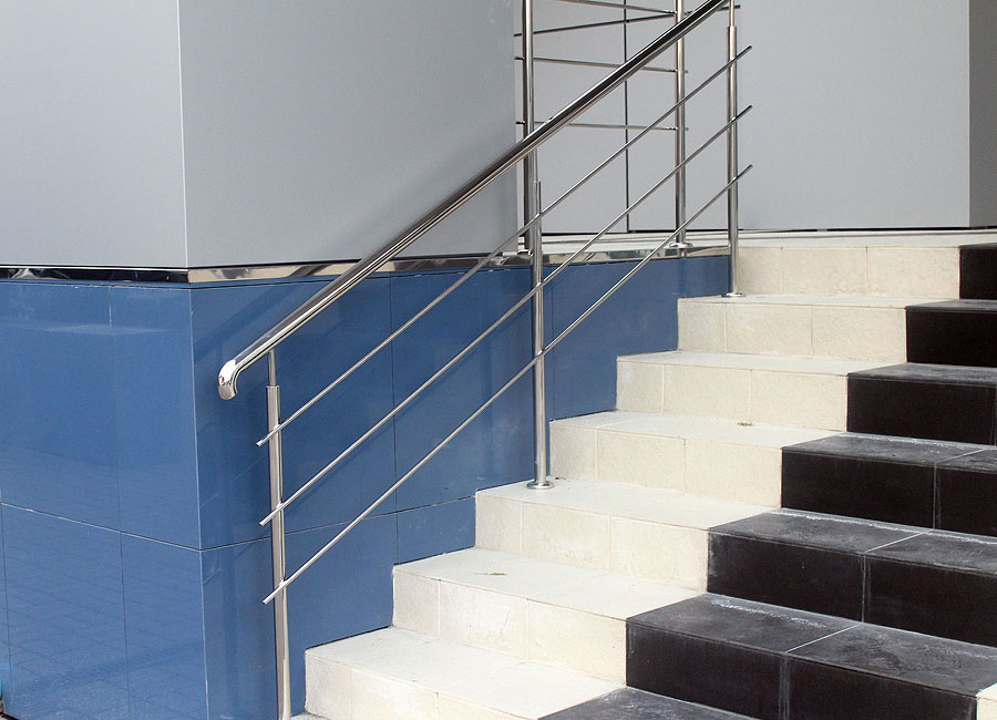 - Исключительная прочность материала. Нержавейка — это тот сплав, который способен выдерживать любые, даже самые внушительные нагрузки, а потому перила, изготовленные из такого материала, используются в гостиницах, общественных зданиях и образовательных учреждениях.