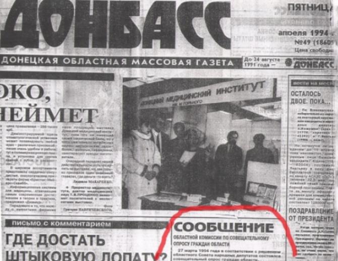 Однако 17 марта 1994 года в Донецкой и Луганской областях прошел провокационный «совещательный опрос» с вопросами о федеративном устройстве и статусе русского языка. Как утверждали организаторы регионального референдума, областные советы, явка составляла 72-75%. За признание русского языка вторым государственным и федеративно-земельное устройство Украины проголосовало подавляющее большинство пришедших на «референдум». По схожему принципу был проведен опрос в Крыму в том же году, где голосующие потребовали больше автономии и разрешения вопроса о двойном гражданстве. Впрочем, в Киеве результаты обоих референдумов тогда проигнорировали. Но «голос Донбасса», еще недавно отданный за независимость, и убежденность некоторых крымчан в тесной близости к России напомнят о себе через 20 лет.