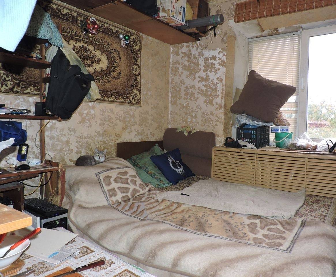 Ещё одно фото той же квартиры. На нём можно получше рассмотреть кровать и заметить картину над ней — чтобы обстановка в жилье не была совсем уж такой мрачной, хотя как по мне картина не сильно спасает ситуацию, а решётка на единственном окне и вовсе создаёт ощущение какой-то тюряги.