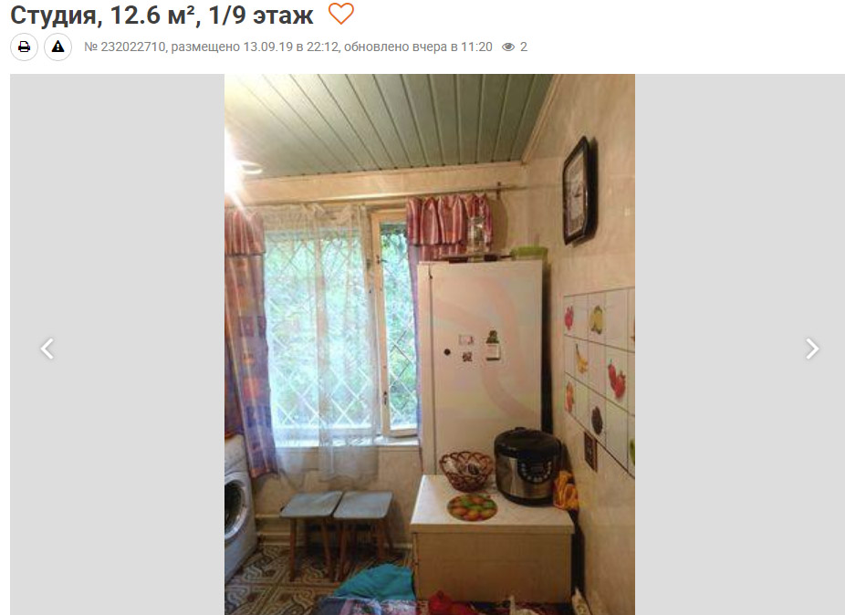 Вот акая квартира площадью 12,6 квадратных метров по цене более 2 миллионов рублей продаётся сейчас в Москве. Как видите — объявление свежее, это ко всем любителям рассказывать сказки о том, что я публикую фото из «проклятых девяностых».