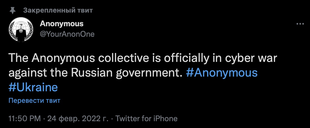 Стоит отметить, что ранее хакеры из группировки анонсировали кибер-атаку на сайт Минобороны оккупантов. Он недоступен с начала атаки на Украину.