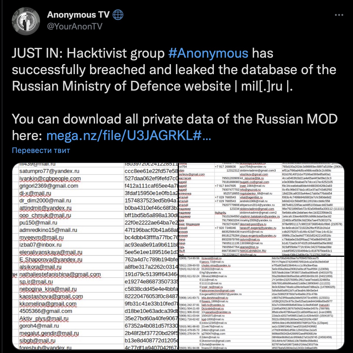 Об это сообщает Anonymous TV.