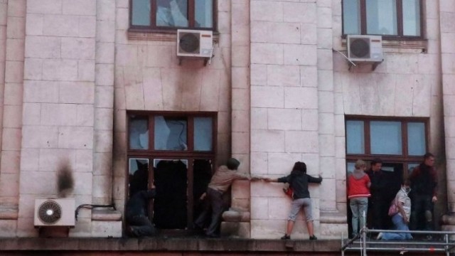 Еще до начала тушения пожара евромайдановцы пододвинули к фасаду элементы сцены и начали спасать заблокированных огнем людей. Если бы не эти действия, жертв было бы гораздо больше. При этом, беспорядки на площади продолжались.