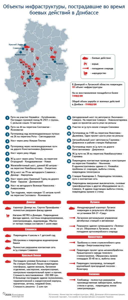 Инфографика: Катастрофа Донбасса. Карта разрушений на востоке Украины